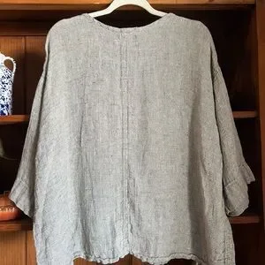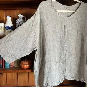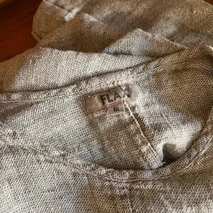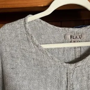 Stylish knit top by Flax. Features a heathered texture and V-neck design.