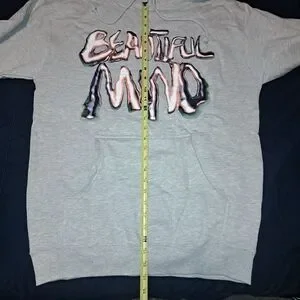 Rod Wave Beautiful Mind Gray Hoodie Sz.M With graphics on front and back. Measurements in photo NWOT