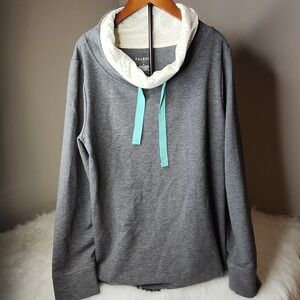 Talbots Womens Sweatshirt Turtleneck Oversized Size Med Gray with Creme Accents