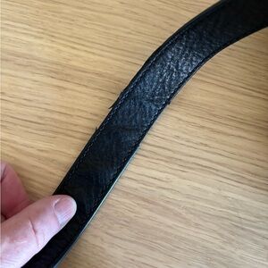 Note there is small imperfection on one of the straps - leather edge has a small peel. See last picture. Not visible.