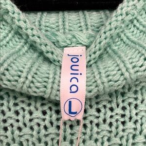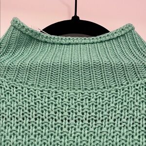 Stay cozy and stylish with this mint green turtleneck sweater. Perfect for layering and adding a pop of color to your wardrobe.