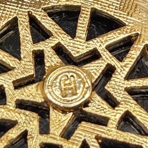 The reverse of the pendant features a decorative cut-out pattern and a small, stamped circles "H" (see close-up photo), the signature monogram of Fred Hayman.