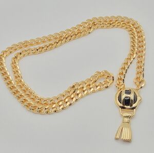 Vintage FRED HAYMAN Beverly Hills Gold Tone Chunky Curb Chain 'H' Tassel