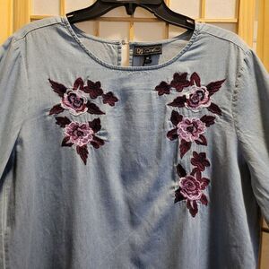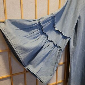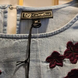 DG2 by Diane Gilman Womens Blue Floral Bell Sleeves Denim Blouse Sz M NWT