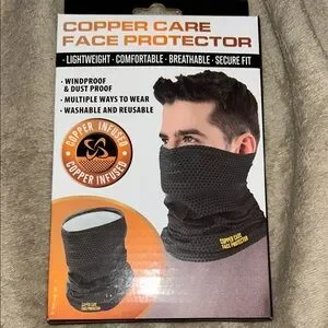 Experience ultimate protection with the Face Protector. This black, copper-infused covering ensures lightweight, breathable comfort and versatile wear. Ideal for windproof and dustproof protection, it's washable and reusable for extended use.
