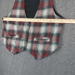 RIDE WOMENS VINTAGE RED PLAID BUTTON FRONT TIE BACK VEST SIZE LARGE