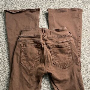 Chic brown flare jeans by Hollister. Perfect for casual wear. Comfortable and stylish.