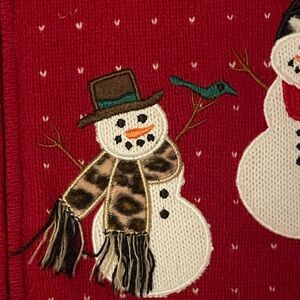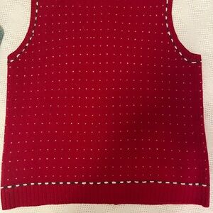 Charter Club Red Lambs Wool Vest Women’s Size L Holiday Snowmen Classic Warmth