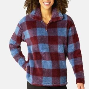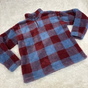 Eddie Bauer Women's Ultra Soft Fleece Quarter Zip Harbor Check Print Pullover M