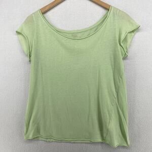 EILEEN FISHER Top M Fine Cotton Jersey Short Sleeve Rolled Hem Scoop Neck Green