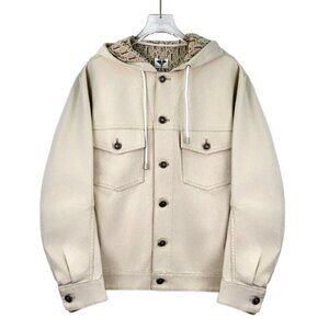 Off-white cotton hooded jacket with full logo-print lining and button closure
