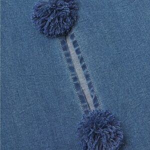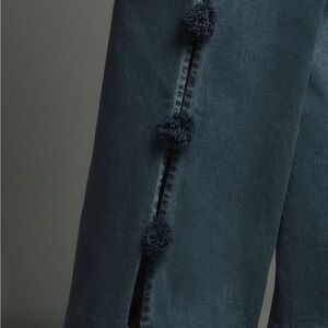 Stylish wide-leg jeans featuring playful pom-pom details. Denim, decoded, these Pom Pom Trouser Jeans by Tracy Reese are exceptional, with their relaxed fit decorated with pom pom embellishments along the length of each leg. Size small, these are new with tags.