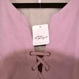 NWT Free People Pink Zephyr Mini Dress, Color Pink/Rose with Soft Suede-Like Material, Lace-Up, Size Medium.