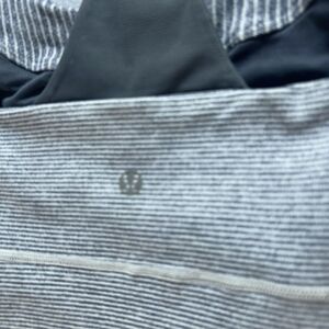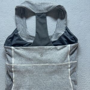 Lululemon Tank Top Womens 6 Gray White Stripe Built-In Bra Racerback Yoga