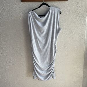 Tyche Grey Asymmetrical Ribbed Rouched Casual Dress - XL
