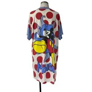 Vintage Disney Mickey Co Womens One Size Dot 90s Sleep Shirt Dress