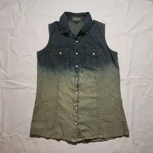TWENTYTHIRTEEN Tank Top Women's Small Blue Green Denim Shirt Button Down Top