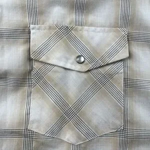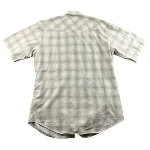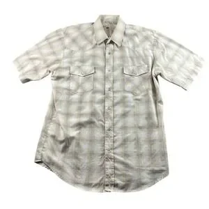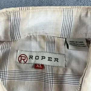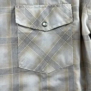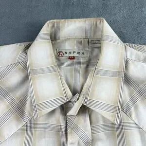Roper Men's XL Western Pearl Snap Beige Plaid Long Sleeve Shirt Silver Threads