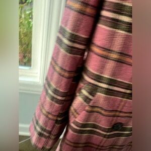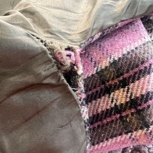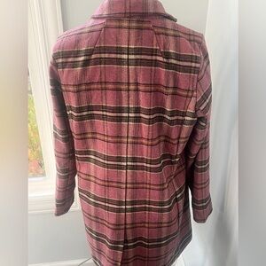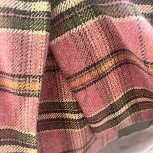 Plaid Pink, Green, Cream,Black and Yellow Plaid. This looks Vintage reminds me of Mary Tyler Moore which might date me!! Overall great jacket minimal wear see below for small defect