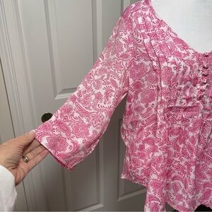 NWOT Counterparts Pink and White Paisley Floral V-Neck 3/4 Sleeve Top Blouse M