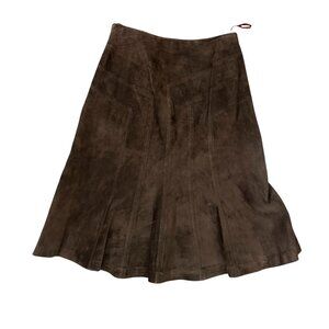 100% Leather Brown Suede Knee Length Skirt ATL Sz 4 Dark academia western