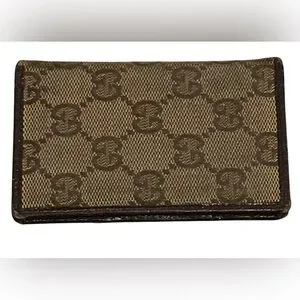 Pre Owned Very Good Condition. Authentic vintage Gucci card holder with signature monogram design. Features beige and brown tones. 5” X 3”