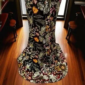 Mac Duggal Green, Black and Orange Tropical and Floral Sequin, Backless Dress, size 2.