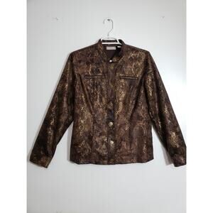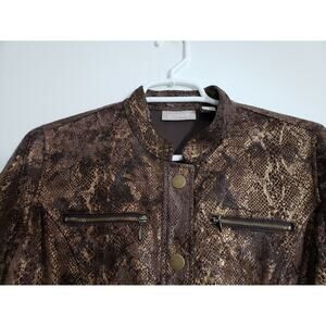 Chico's Women's Jacket Size 0 (S) Snake Printed Metallic Snaps Buttons Lightweight