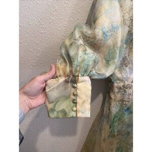 ASOS EDITION organza blouson sleeve midi dress in yellow floral print