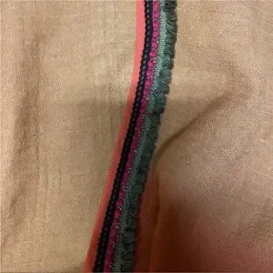 BEAUTIFUL dip-dyed cranberry rust-red-orange and tan open front poncho. Perfect for layering in the fall!!! Accented beaded trim featuring pompoms in complimentary hues of pine green magenta coral and black. Wool rayon blend. Snaps on sides. One size fits all. Photos don’t do this justice -so pretty!!!