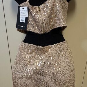 Fashion Nova 2 piece Sequin Dress in Gold