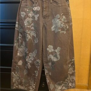 Elegant cropped pants with floral design. Perfect for versatile styling. Comfortable and chic.
