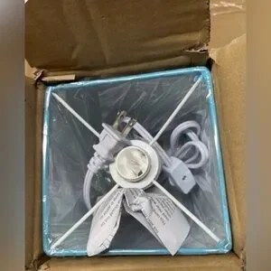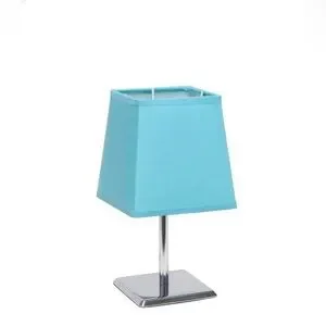 Simple Designs Mini Chrome Squared Empire Fabric Shade Table Lamp,Blue