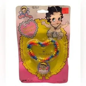 Add a playful touch to any outfit with this colorful beaded necklace featuring Betty Boop. Perfect for kids.