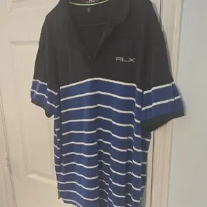 RLX Ralph Lauren Navy and White Striped Polo Shirt