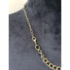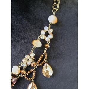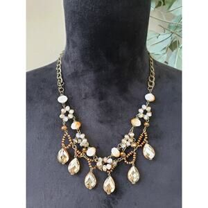 Women Gold Tone Multi Shape Faceted Beads Dangley Charms Bib Necklace w/ Lobster.
