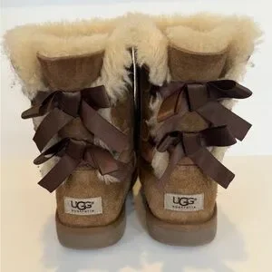 UGG Women's Chestnut Brown Bailey Bow II Short Sheepskin Boots Size 5