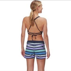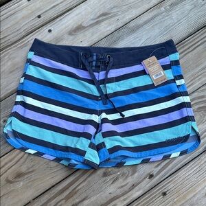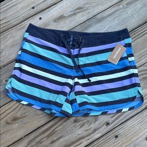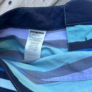 NWT Patagonia Wavefarer Blue Striped Board Shorts Zip-Pocket Tie Front Size 6