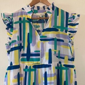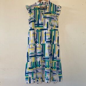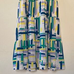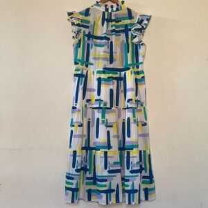 PINCH Stella Tiered Ruffle Midi Dress Multicolor Abstract Print Size L