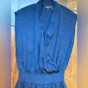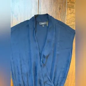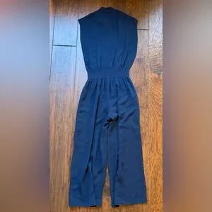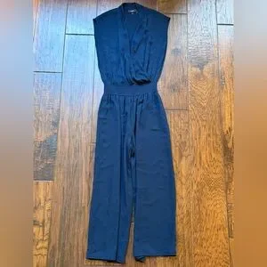 THEORY Women’s Draped Jumpsuit Navy 100% Silk Cropped Travel