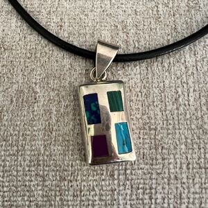 Silpada Sterling Silver Malachite Sugilite Turquoise Azurite Slide Pendant 16"