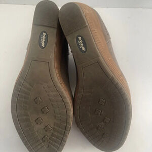 Stylish taupe ankle booties. Features wedge heel and perforated detail. Comfortable and chic design.