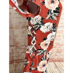 Floral Bodysuit Sz XL Scoop Neck and Back Open Sides Short Sleeve Top Blouse