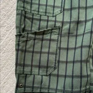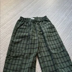 Olive pants with dark stripes. Comfortable and stylish. Perfect for casual wear.