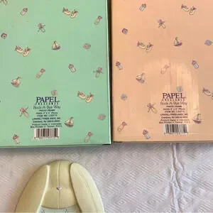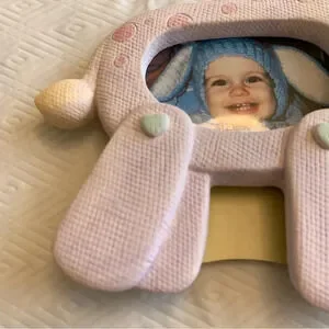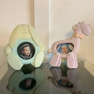 New with box! Green is a ceramic of a cute bunny for 3x3” photo. Pink is a ceramic giraffe for a 2x3” photo. Great for gifts and the grandparents or aunties and uncles.