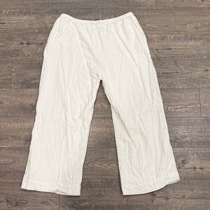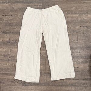 Comfortable white linen drawstring pants. Love these pants and they aren’t see through like many others but I got the wrong length. These are Abercrombie Large Regular length!