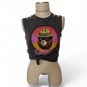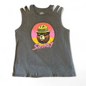 *NEW* Gray Smokey the Bear Graphic Sleeveless Cut Out Retro T-shirt