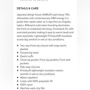 Nike Ambush LA Lakers Spellout NBA Jacket Coat Puffer Zip Button White NWT Med