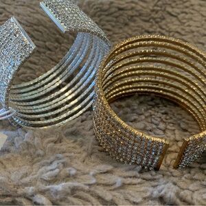 Add a touch of elegance to your outfit with these stunning gold and silver cuff bracelets. Perfect for any occasion.