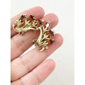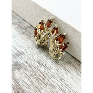 Kramer Topaz Rhinestone and Gold Tone Floral Earrings